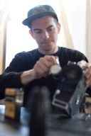 Previous ImageNext Image Josh Stewart with camera extended Theories of Atlantis Static IV interview photo Pep Kim Speedway Skateboarding Magazine